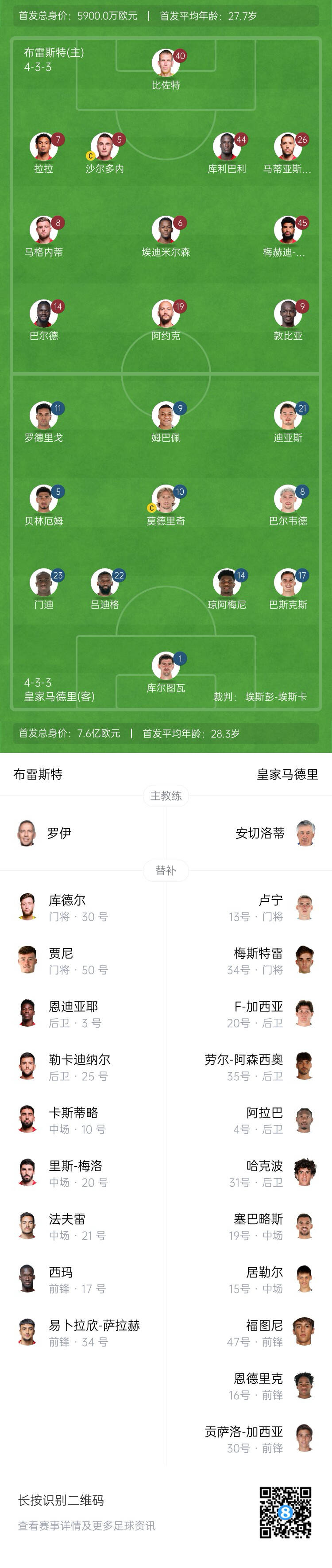 1月30日訊 歐冠聯(lián)賽階段最后一輪,皇馬客戰(zhàn)布雷斯特,皇馬提前公布首發(fā)。