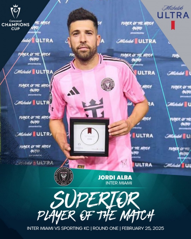 2月26日訊 中北美聯(lián)冠軍杯,邁阿密國際3-1堪薩斯城。賽后,本場比賽送出1次助攻的阿爾巴當選全場最佳球員。
