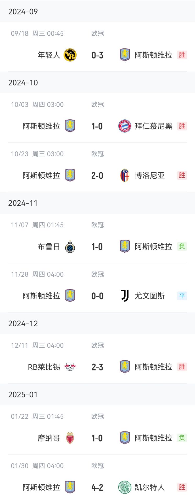維拉在聯(lián)賽階段取得了5勝1平2負(fù)的成績(jī),在對(duì)陣一檔球隊(duì)拜仁和萊比錫時(shí),他們都取得了勝利,還戰(zhàn)平了尤文,最終在36支隊(duì)伍里排名第8,直通16強(qiáng)。
