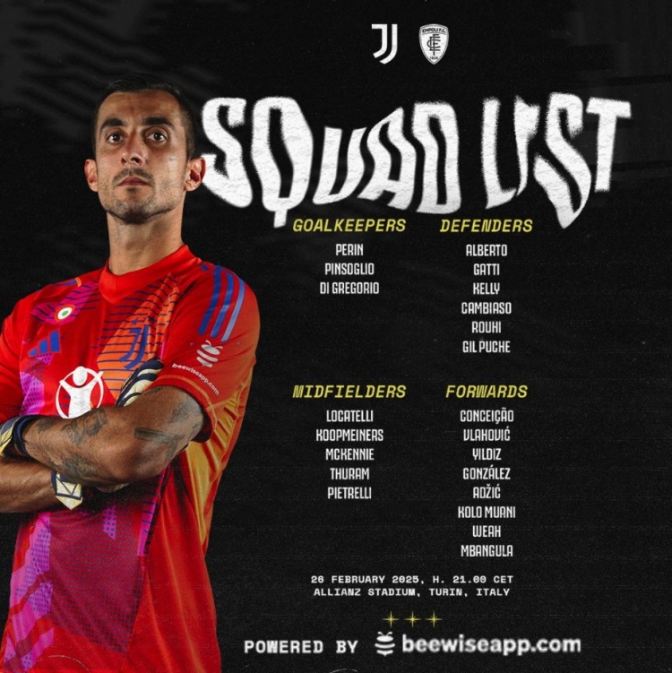 2月26日訊 北京時(shí)間2月27日凌晨4:00,意大利杯1/4決賽,尤文圖斯將坐鎮(zhèn)主場(chǎng)迎戰(zhàn)恩波利。賽前,尤文官方公布本場(chǎng)比賽大名單,弗拉霍維奇領(lǐng)銜鋒線,庫普梅納斯在列。