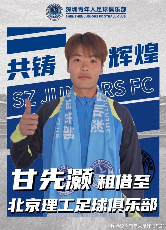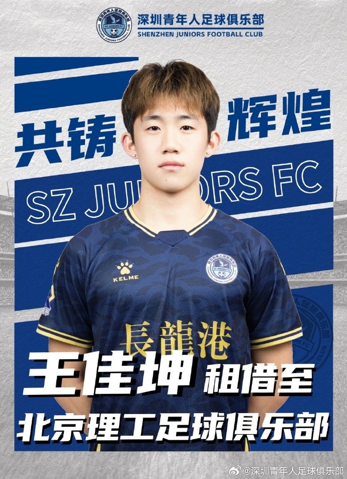 2月26日訊 深圳青年人官方宣布,王佳坤、甘先灝以租借形式加盟北京理工足球俱樂部。
