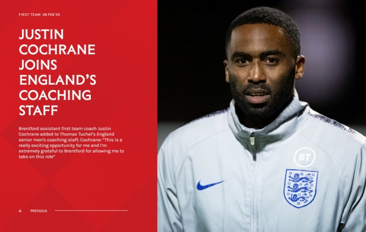 官方:布倫特福德助教賈斯汀-科克倫加入圖赫爾的英格蘭教練組