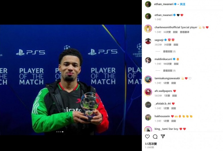 他也在今日通過社媒更新動態(tài),曬出自己賽后手捧全場最佳獎杯的照片,并附上“??????”表情符號。