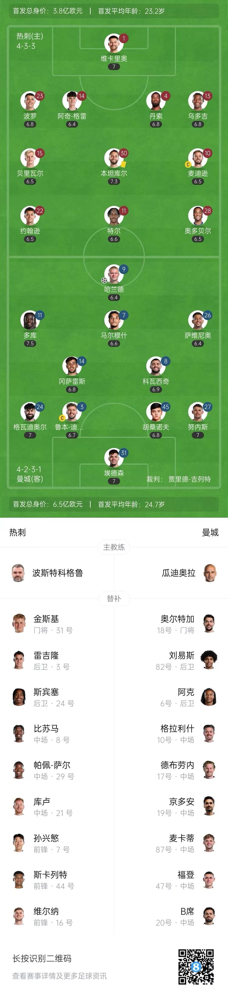 半場-曼城暫1-0熱刺 哈蘭德破門多庫送助攻薩維尼奧失良機(jī)