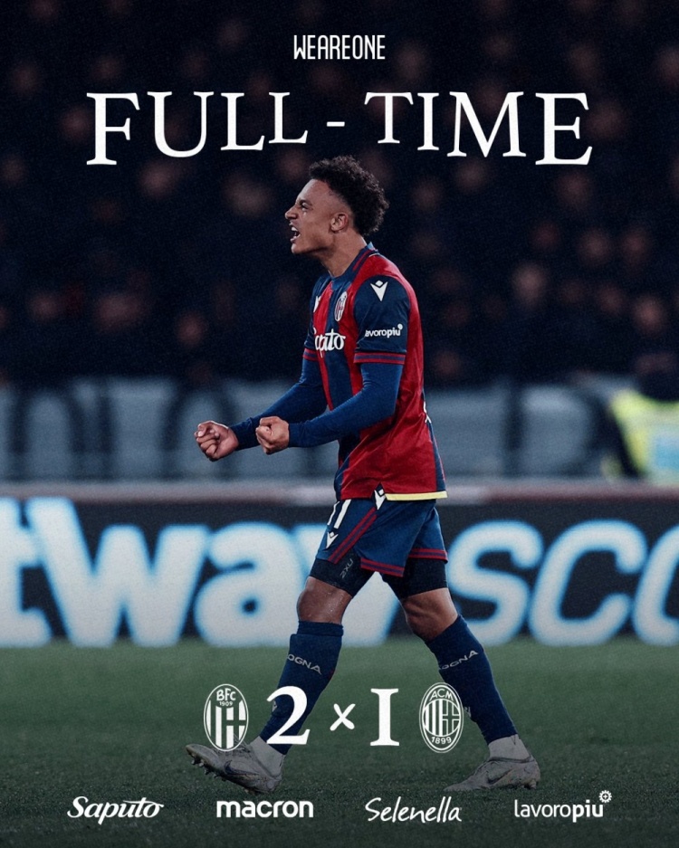 - 博洛尼亞意甲主場(chǎng)戰(zhàn)勝米蘭,自2002年3月以來(lái)首次