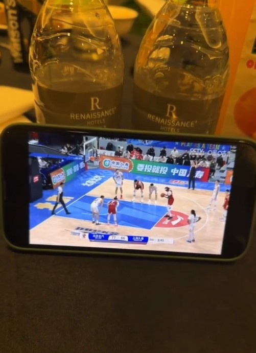 真籃球迷!國(guó)安外援法比奧用手機(jī)觀看CBA直播