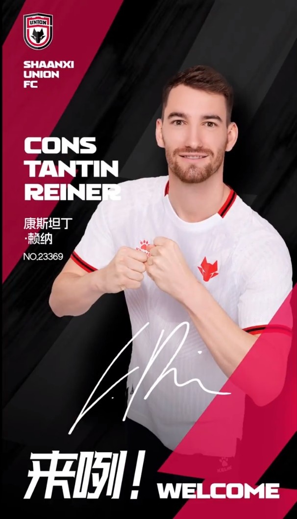 經(jīng)與球員本人友好協(xié)商并達(dá)成一致,球員康斯坦丁·賴(lài)納(Constantin Reiner)會(huì)員號(hào):23369,正式加盟陜西聯(lián)合足球俱樂(lè)部!