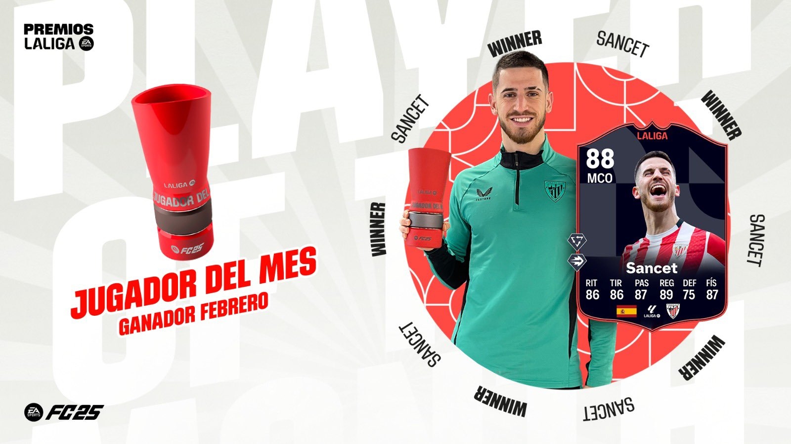 3月1日訊 西甲官方宣布,畢巴中場桑謝特當選聯(lián)賽2月最佳球員。