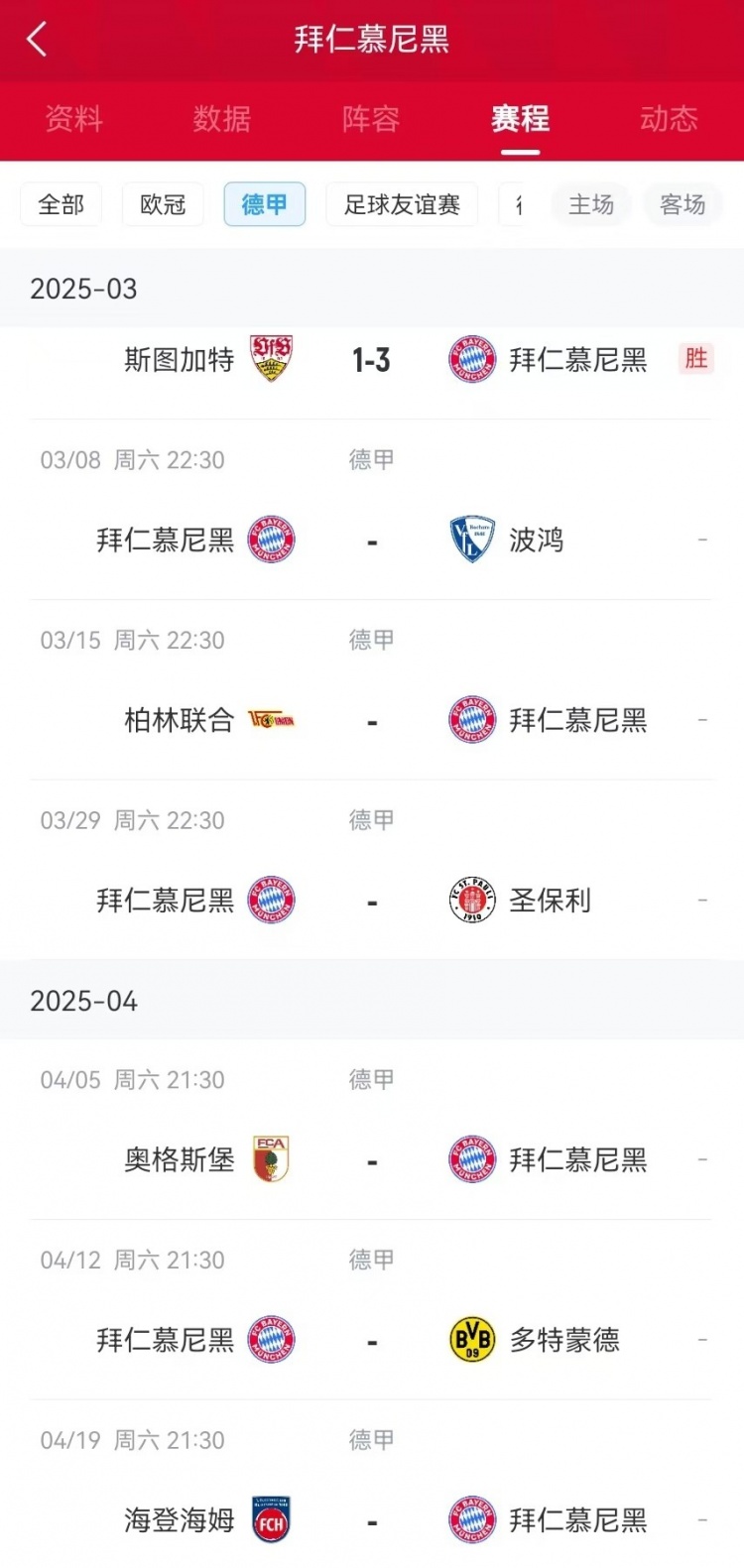 拜仁未來6輪對(duì)手聯(lián)賽排名: