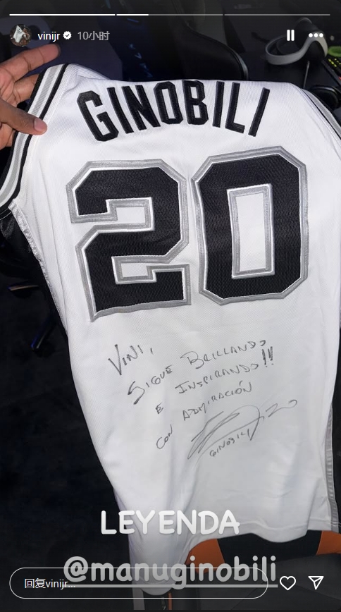 維尼修斯社媒曬吉諾比利簽名球衣:傳奇