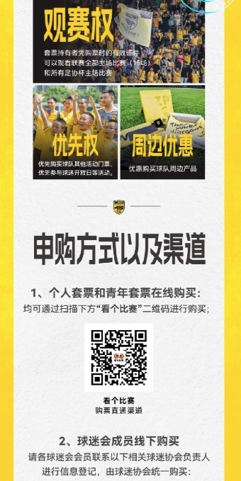 其中,個人套票599元/賽季,青年套票399元/賽季(2000年1月1日及以后出生),單場散票有50元和100元檔。