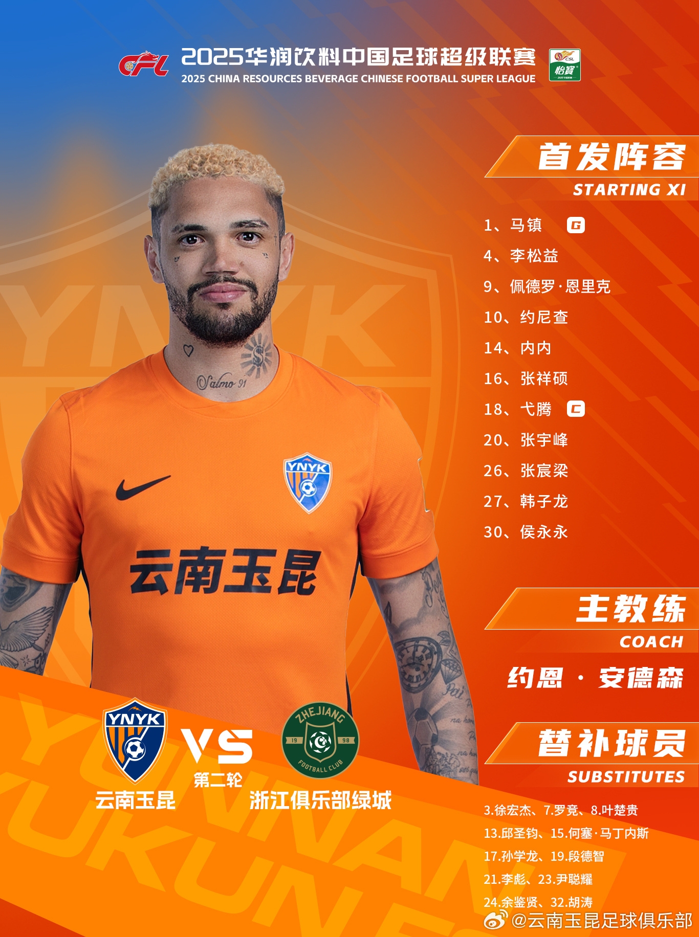 - 玉昆vs浙江名單出爐,恩里克與張宇峰首發(fā),弋騰復(fù)出帶上隊(duì)長袖標(biāo)