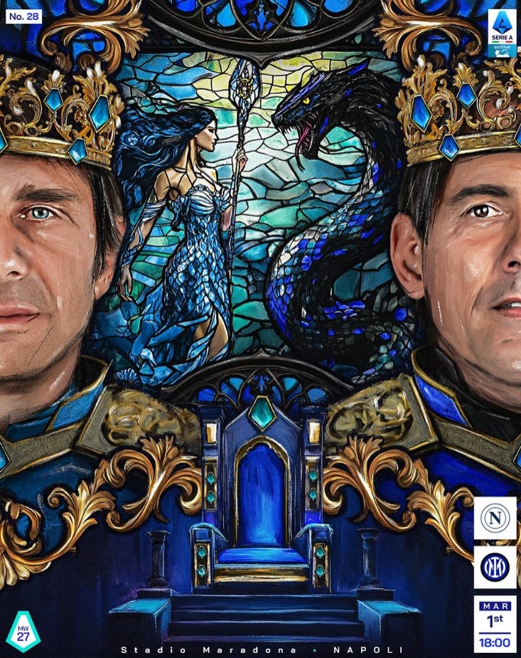 3月1日訊 本輪意甲將迎來國(guó)米與那不勒斯的焦點(diǎn)對(duì)話,意甲官方也曬出海報(bào)為本場(chǎng)比賽預(yù)熱,海報(bào)中的主角是兩隊(duì)主帥孔蒂、小因扎吉,兩人頭戴王冠爭(zhēng)奪王位。