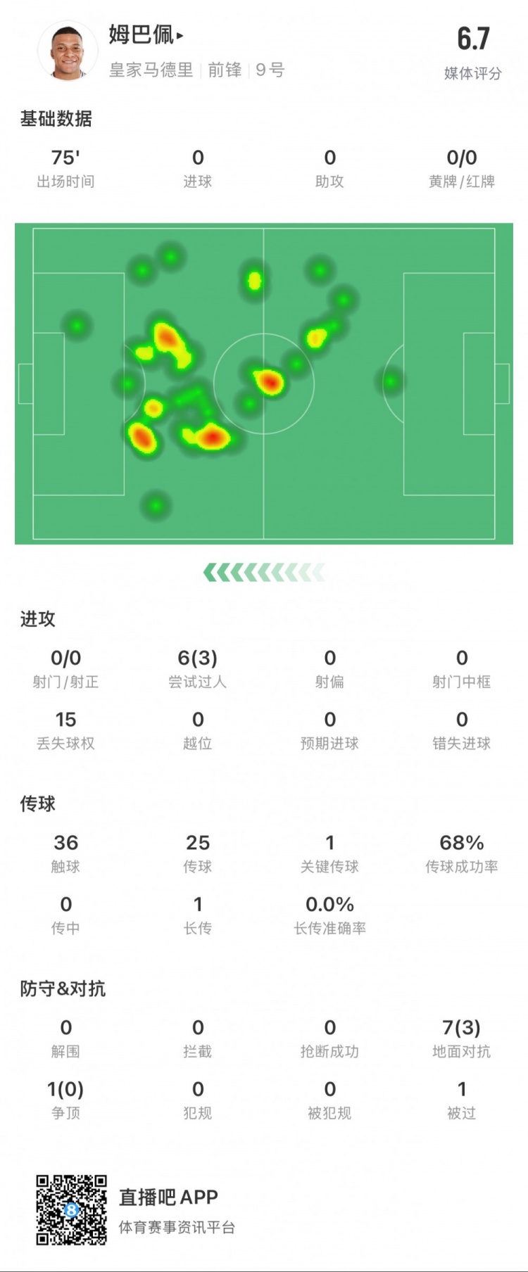 3月2日訊 本輪西甲,皇馬對陣貝蒂斯,姆巴佩本場數(shù)據(jù):
