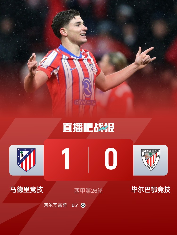 03月02日訊 西甲第26輪,馬競1-0力克畢爾巴鄂。阿爾瓦雷斯本場比賽替補破門,收獲自己的聯(lián)賽第10球。