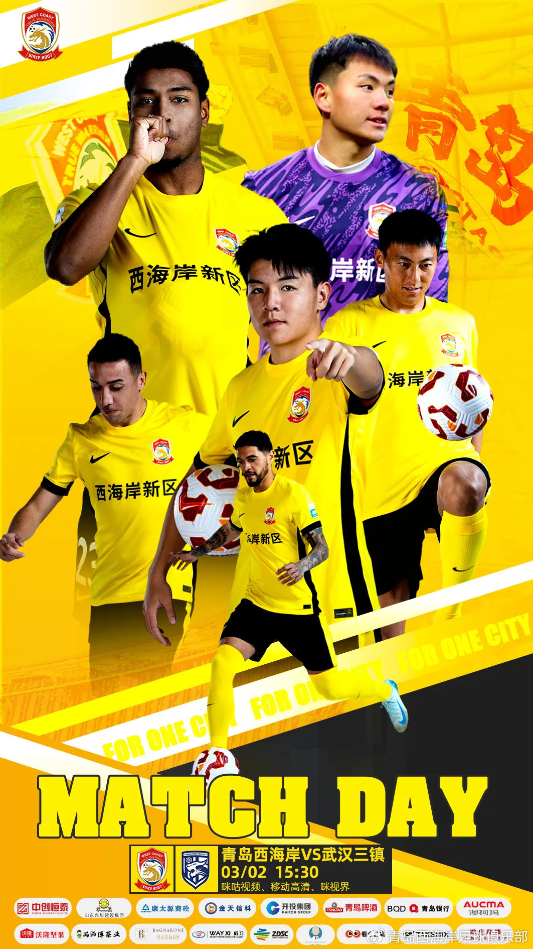 西海岸vs三鎮(zhèn)首發(fā):五外援PK四外援,徐彬、段劉愚先發(fā)