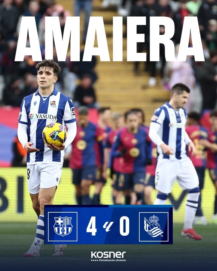3月3日訊 皇家社會(huì)在本輪西甲客場0-4慘敗巴薩,他們?nèi)珗鑫茨芡瓿扇魏紊溟T。