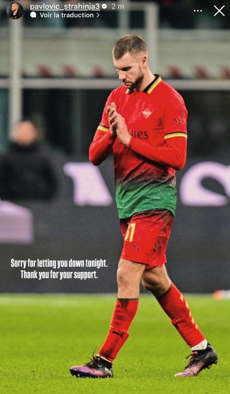 3月3日訊 米蘭在本輪意甲主場1-2被拉齊奧絕殺,帕夫洛維奇染紅離場。