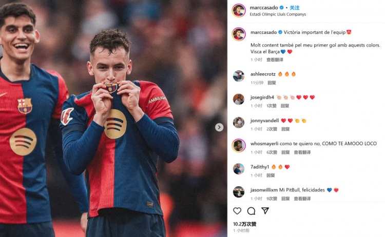 卡薩多也通過社媒曬出自己親吻隊(duì)徽的照片,并配文:“球隊(duì)拿下重要的勝利!我非常高興能夠打進(jìn)巴薩生涯處子球,巴薩萬歲!”