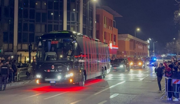 據(jù)報道,載有AC米蘭全隊的大巴抵達圣西羅球場。現(xiàn)場球迷在車輛抵達時發(fā)出噓聲。