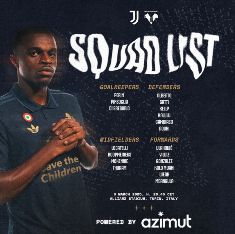 3月3日訊 北京時間3月4日凌晨3:45,2024-25賽季意甲聯(lián)賽第27輪,尤文圖斯將坐鎮(zhèn)主場迎戰(zhàn)維羅納。賽前,尤文官方公布了本場比賽球隊大名單,弗拉霍維奇領(lǐng)銜鋒線,中場僅4人。