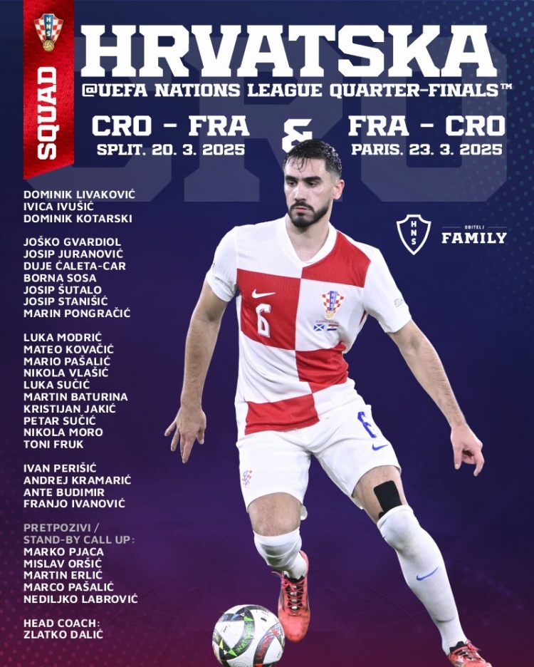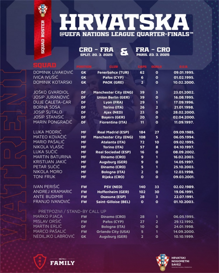 3月國際比賽日,克羅地亞將在歐國聯比賽中兩回合對陣法國隊。