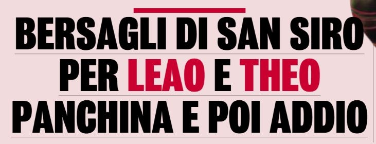 03月04日訊 意大利記者Giovanni Capuano發(fā)布推文,引用意媒Gds的紙質(zhì)版報(bào)道,表明AC米蘭的特奧與萊奧都有可能夏窗離隊(duì)。