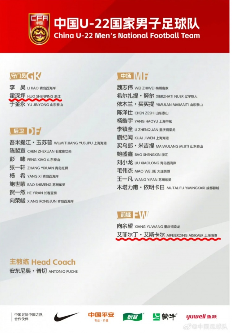 恭喜!恒大足校培養(yǎng)球員霍深坪、艾菲爾丁入選U22國足
