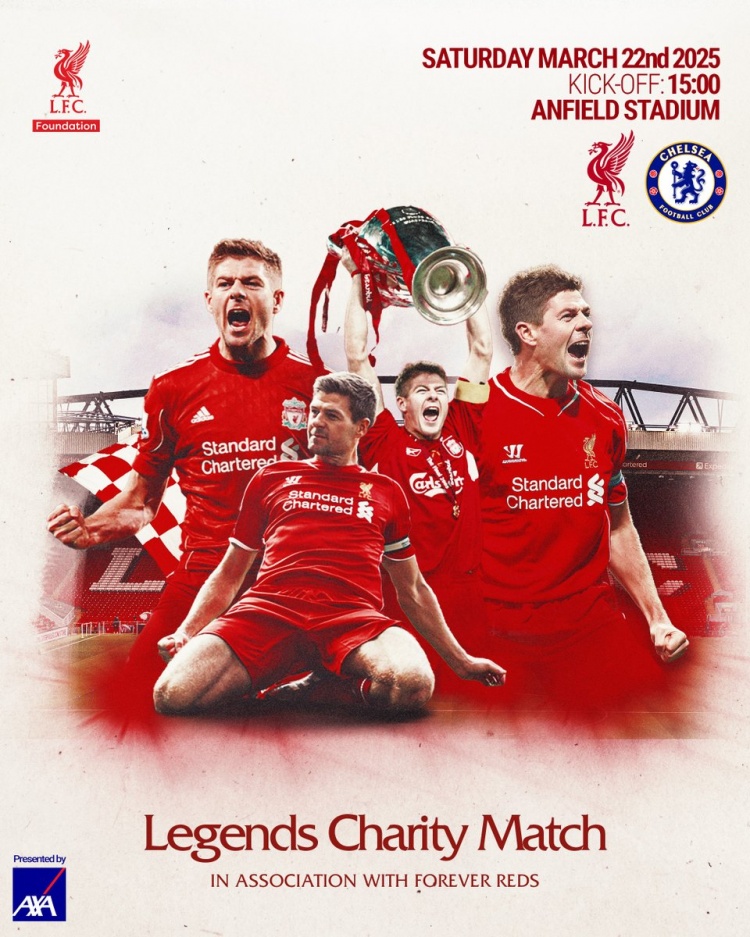 本場比賽將于3月22日周六于安菲爾德進行,比賽所得的所有收入將捐給利物浦足球俱樂部基金會,并支持包括Forever Reds、切爾西俱樂部基金會和切爾西球員信托基金在內(nèi)的受益人。