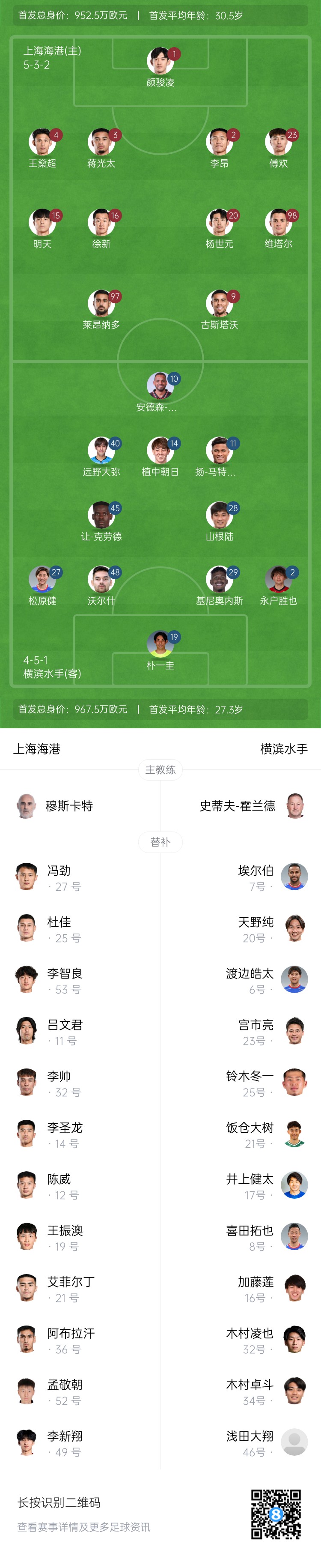 03月04日訊 北京時(shí)間今晚20點(diǎn),亞冠精英聯(lián)賽東亞區(qū)1/8決賽首回合,上海海港主場(chǎng)迎戰(zhàn)橫濱水手,賽前雙方公布首發(fā)陣容。
