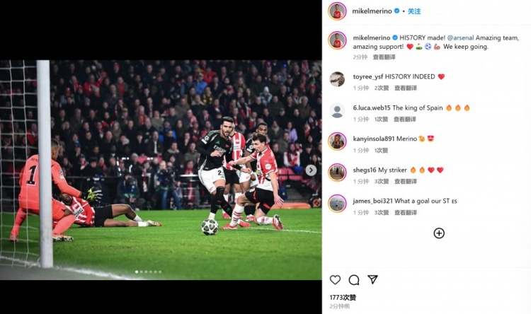 他也在賽后通過(guò)社媒曬出自己的進(jìn)球瞬間,并配文:“7造歷史!@阿森納,難以置信的球隊(duì),難以置信的支持!??????我們繼續(xù)努力!”