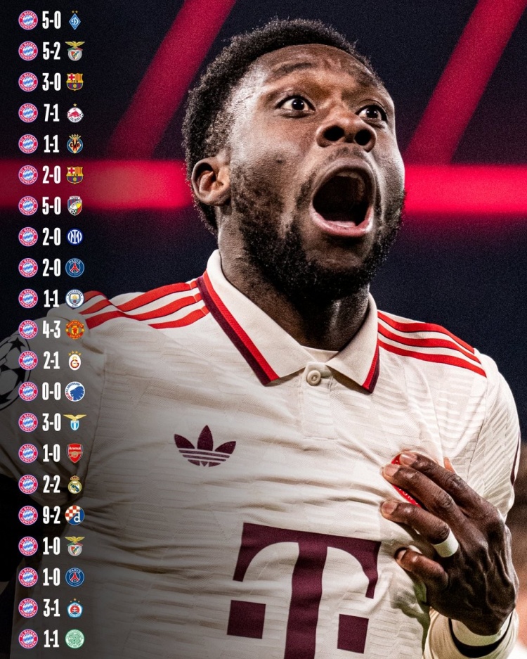 拜仁官推曬主場(chǎng)歐冠戰(zhàn)績(jī):近4年連續(xù)21場(chǎng)不敗,豪取16勝5平