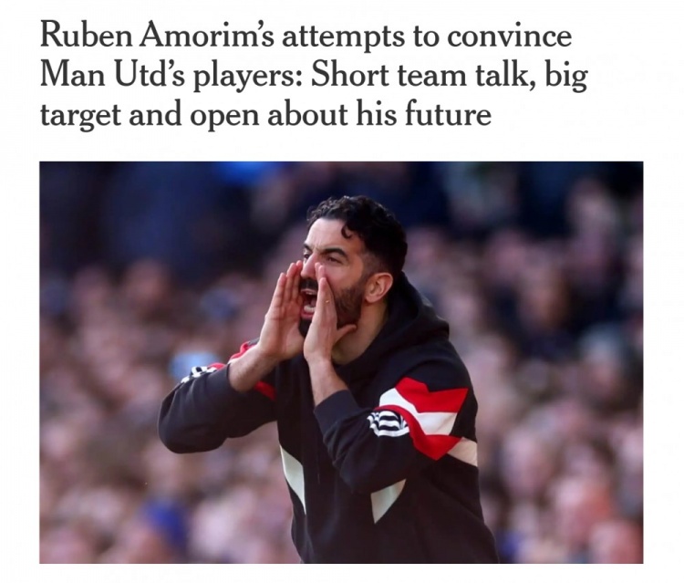 自11月上任以來,阿莫林嘗試了多種與球員溝通的方式。在古迪遜公園球場逼仄的更衣室里,他選擇了使用簡明扼要的表達(dá)方式。當(dāng)時(shí)曼聯(lián)0-2落后埃弗頓,正經(jīng)歷賽季最糟糕的比賽狀態(tài),但阿莫林沒有進(jìn)行冗長的戰(zhàn)術(shù)講解。