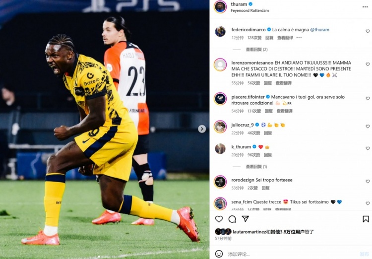 鋒線(xiàn)雙星雙雙破門(mén),勞塔羅&小圖拉姆社媒曬怒吼慶祝照