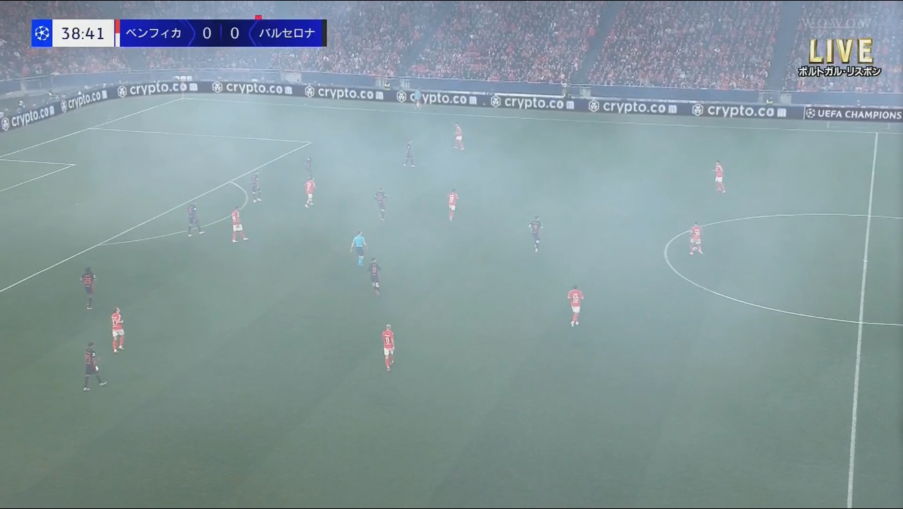 - 本菲卡球迷燃放煙花,現(xiàn)場(chǎng)煙霧繚繞