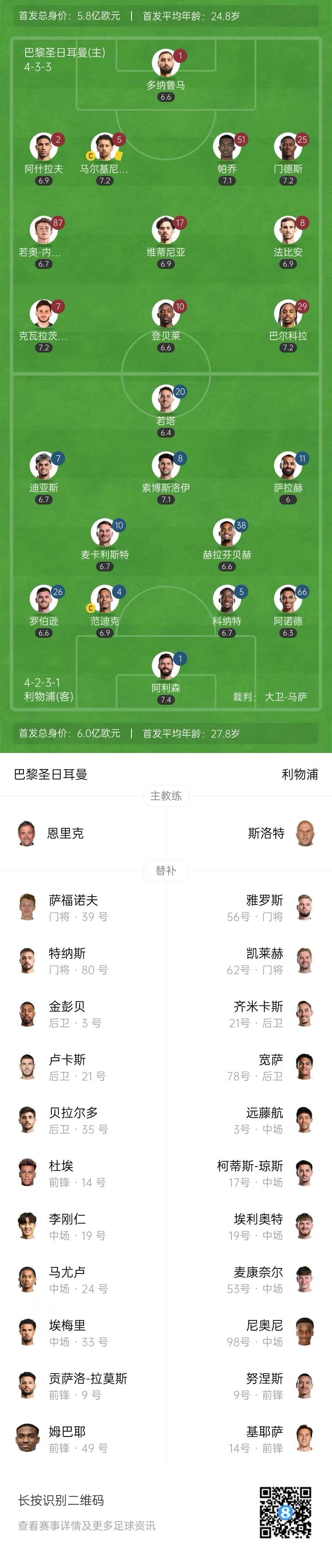半場-巴黎暫0-0利物浦 利物浦0射門克瓦拉進(jìn)球被吹登貝萊失單刀