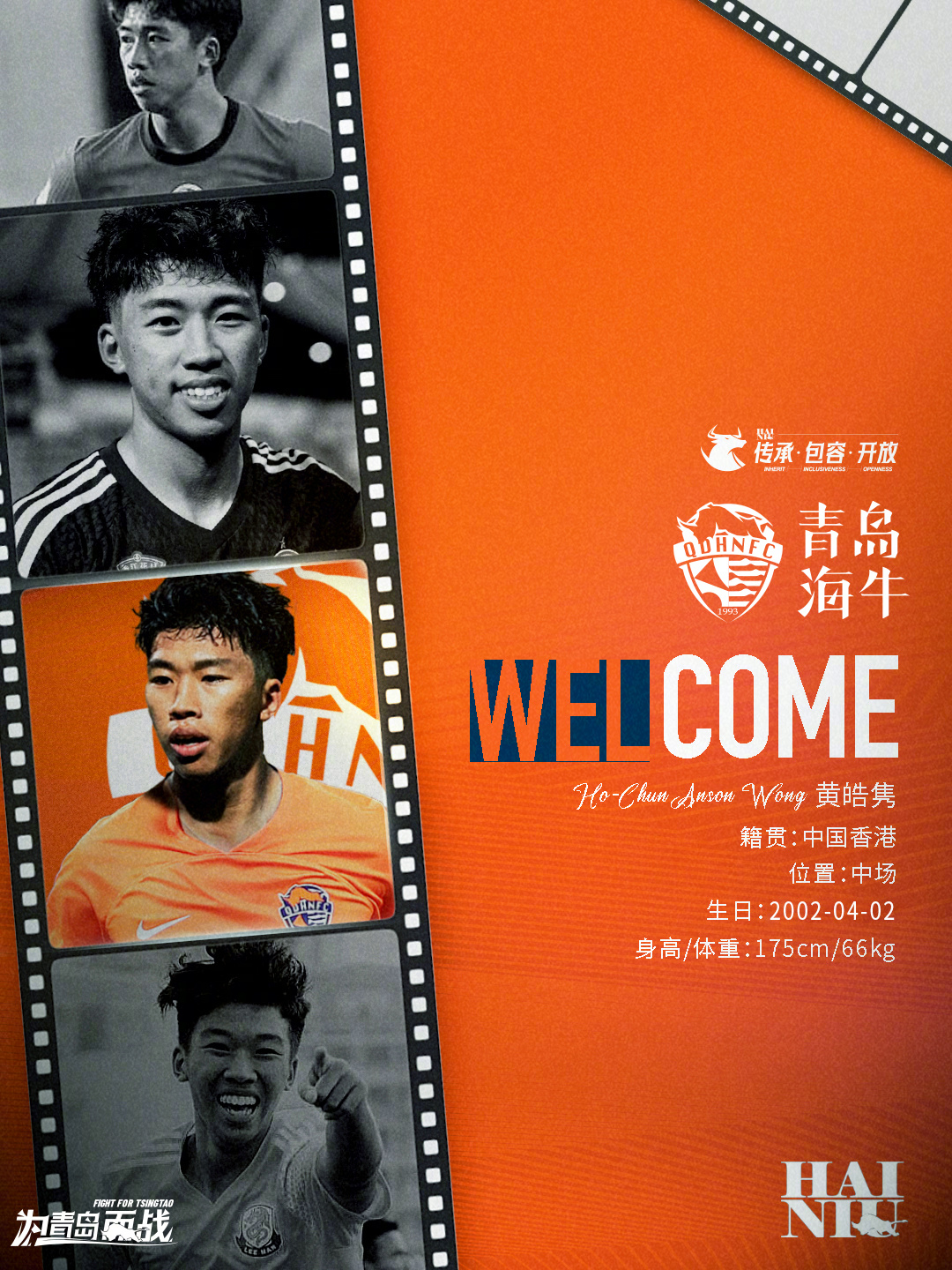經(jīng)與中國香港東方足球俱樂部友好協(xié)商并達(dá)成一致,中國香港球員黃皓雋轉(zhuǎn)會加盟青島海牛足球俱樂部,黃皓雋與俱樂部簽署兩年合約,歡迎他的到來。