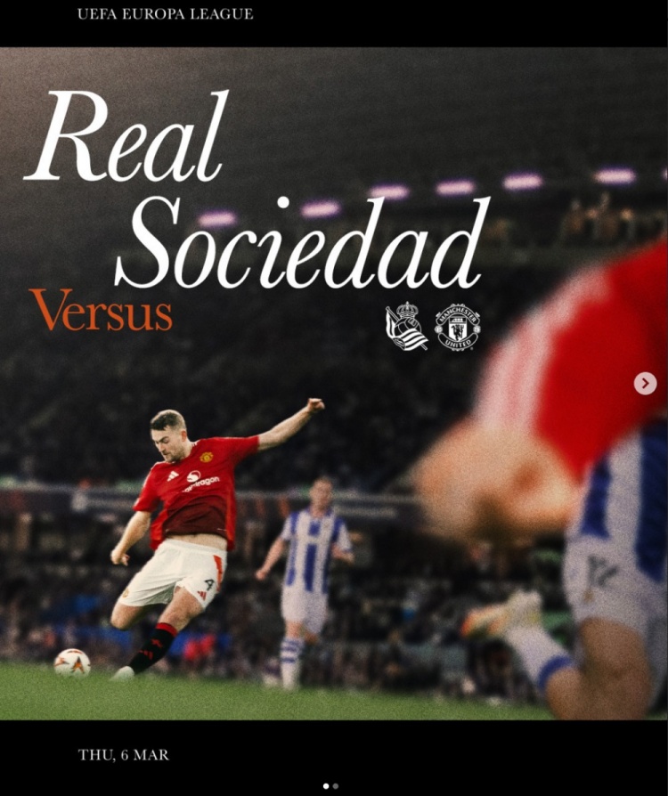 曼聯(lián)發(fā)布為此役制作的海報,德里赫特出鏡,曼聯(lián)社媒配文:“歐聯(lián)杯淘汰賽現(xiàn)在開始?!?/p>
