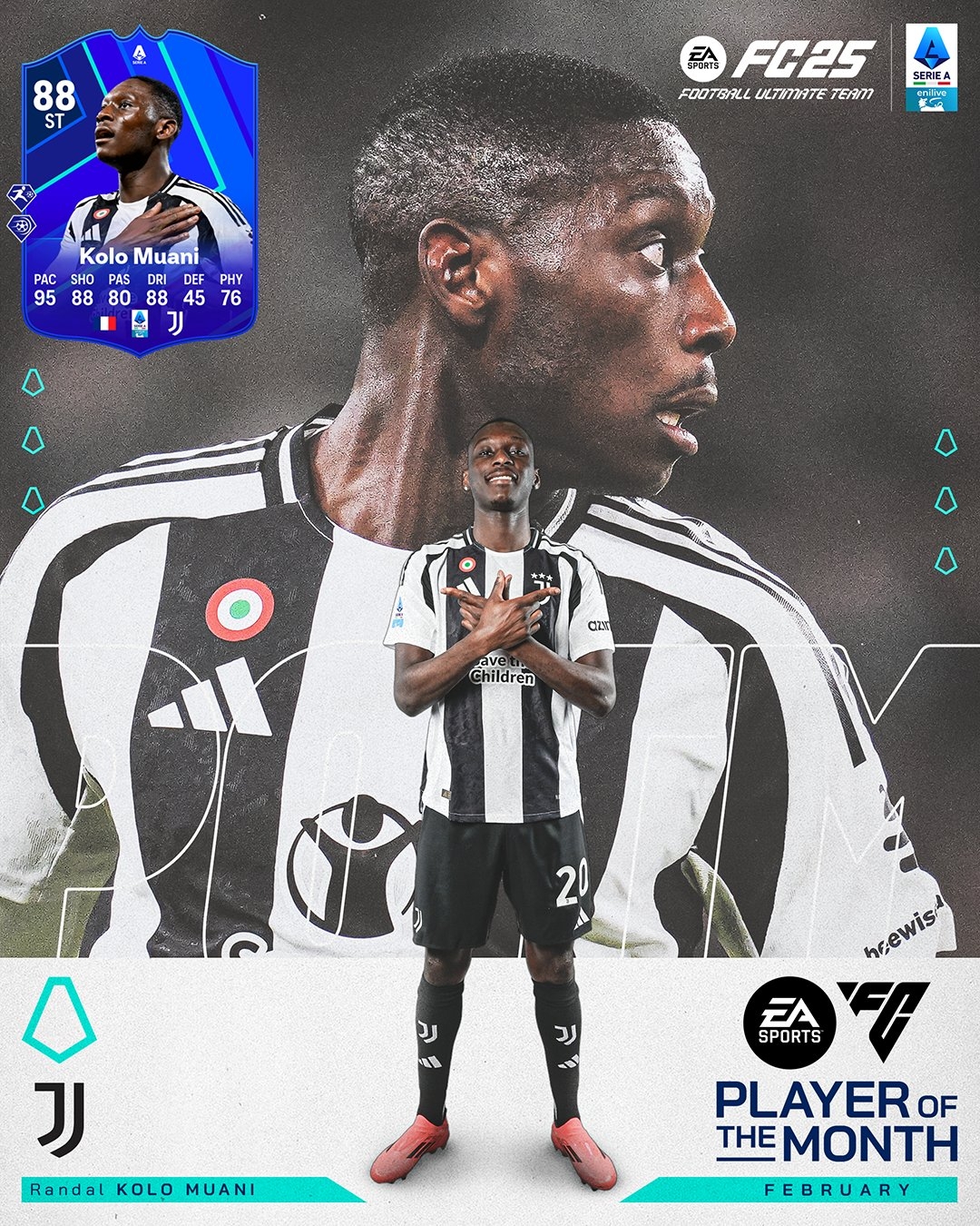 4輪4球1助攻!官方:尤文前鋒穆阿尼當(dāng)選意甲2月最佳球員