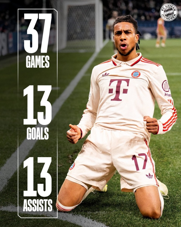 數(shù)據(jù)統(tǒng)計(jì)顯示,23歲的法國(guó)邊鋒在去年夏天5300萬(wàn)歐元從水晶宮轉(zhuǎn)會(huì)拜仁,本賽季各項(xiàng)賽事為拜仁出戰(zhàn)37場(chǎng),貢獻(xiàn)13球13助攻。