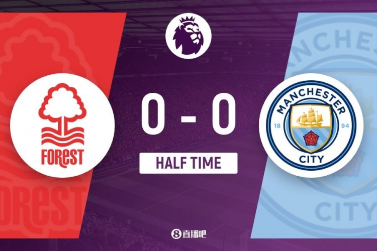 上半場(chǎng)比賽結(jié)束,曼城0-0諾丁漢森林。
