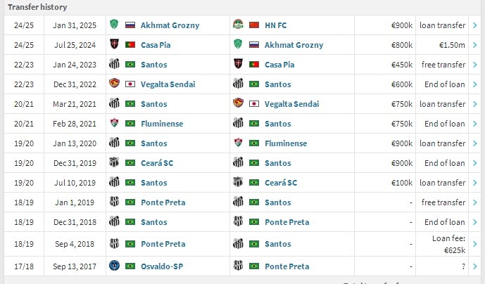 根據(jù)《轉(zhuǎn)會(huì)市場(chǎng)》資料,卡多索已經(jīng)由格羅茲尼租借加盟河南隊(duì),球員目前的身價(jià)是90萬(wàn)歐元。