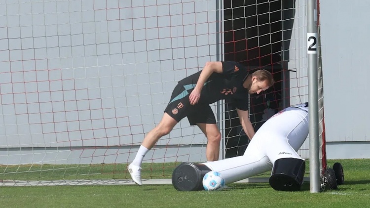 圖片報:拜仁今日未合練,凱恩奧利塞主動加練射門&充氣玩偶陪練