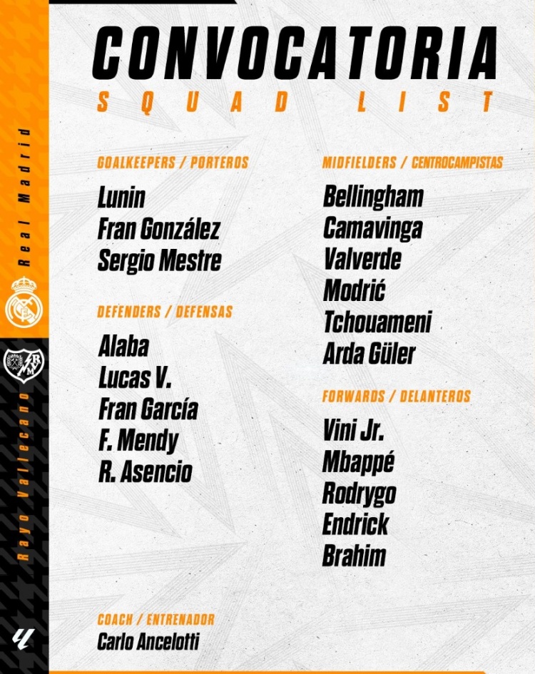 前鋒:維尼修斯、姆巴佩、羅德里戈、恩德里克、卜拉欣-迪亞斯