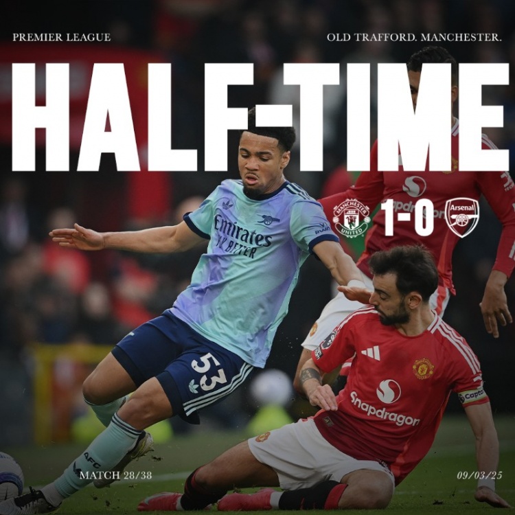 3月10日訊 本輪英超焦點戰(zhàn),曼聯(lián)在主場上半場1-0領(lǐng)先阿森納。