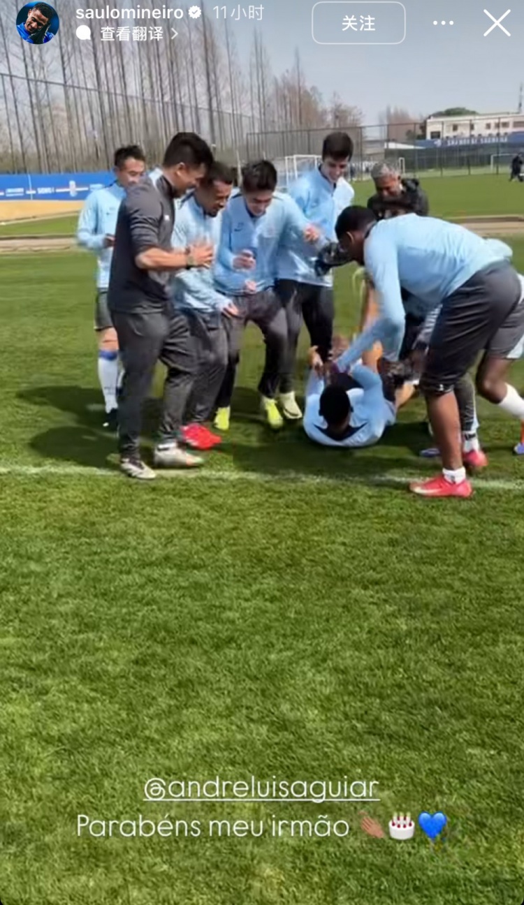 3月10日訊 昨天是申花外援安德烈-路易斯的31歲生日。另一名申花外援米內羅更新社媒,曬出球隊在訓練時為路易斯慶祝的視頻。