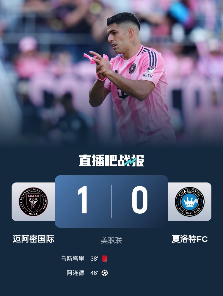 美職聯(lián)本輪邁阿密國際1-0擊敗夏洛特FC,梅西替補(bǔ)未出場,阿連德破門,蘇亞雷斯助攻。
