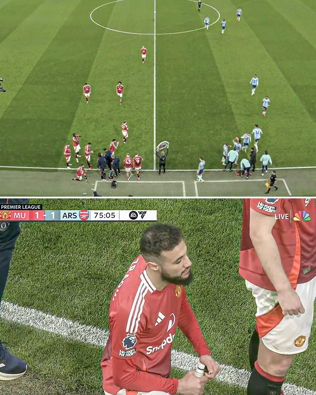 03月10日訊 本輪英超曼聯(lián)主場1-1戰(zhàn)平阿森納,比賽第76分鐘,就在賴斯破門后,主裁將球員叫到場邊,給了一次補(bǔ)水的機(jī)會。