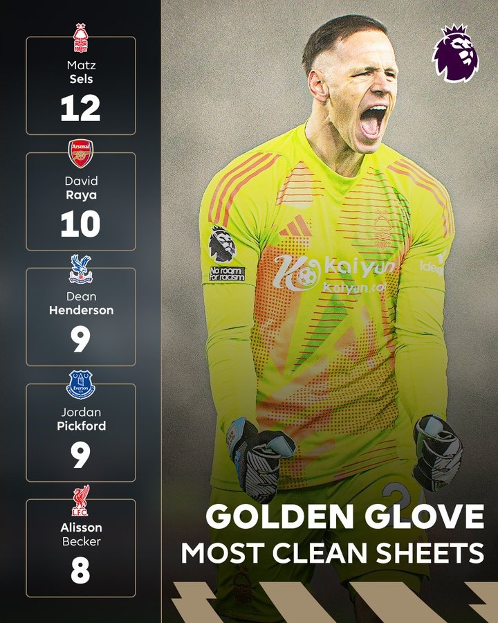 英超官方曬金手套海報:森林門將塞爾斯12零封引領(lǐng)群雄