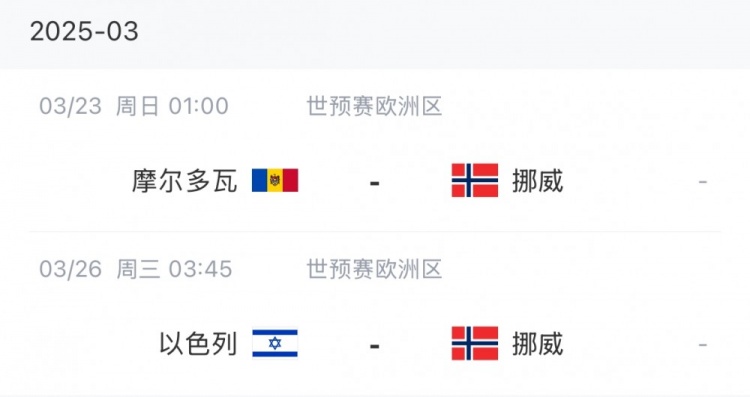 挪威本月賽程: